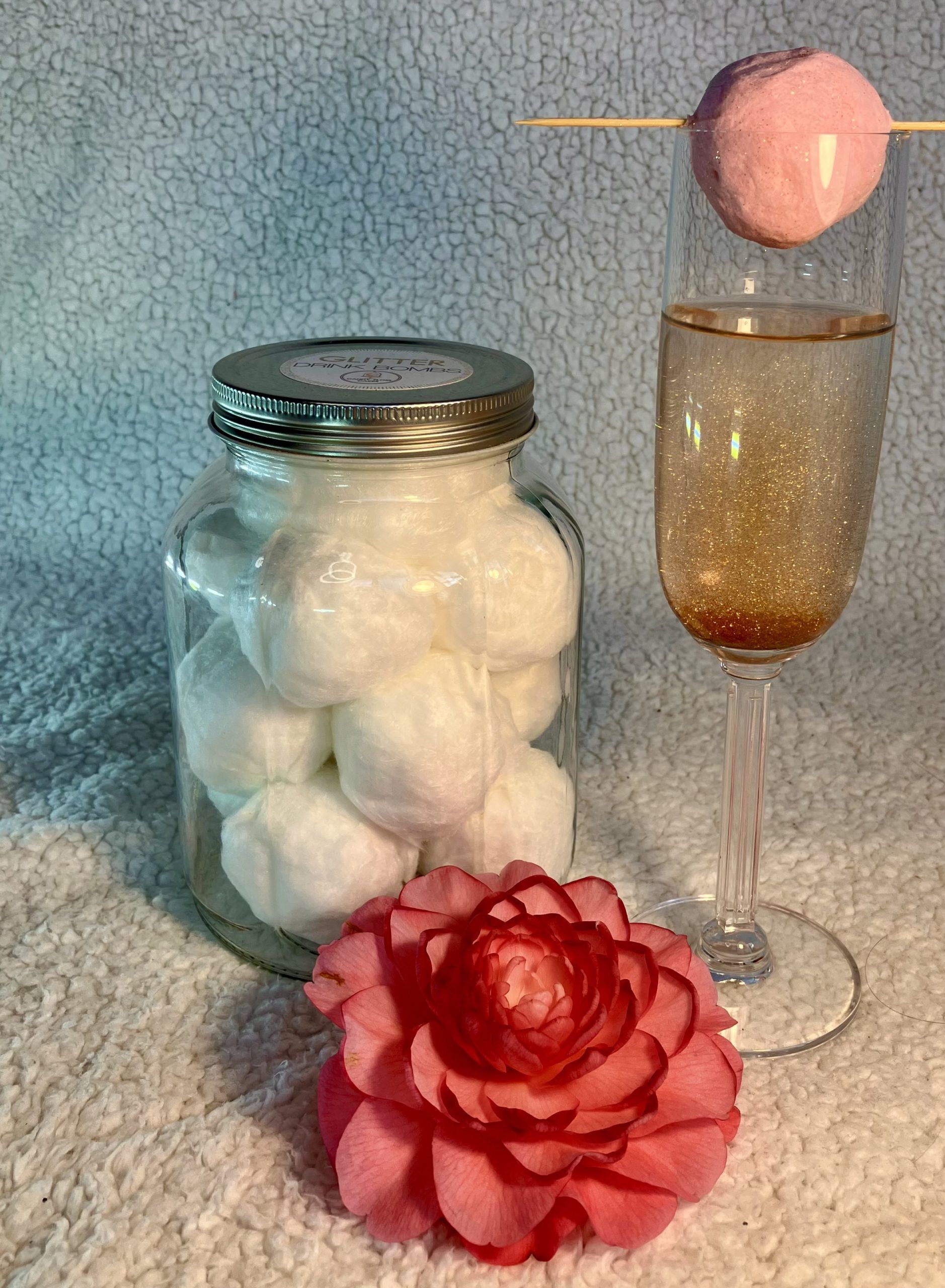 Place a Glitter Bomb in a glass and either fill glass halfway or slowly pour your choice of bubbly drink over it. Pour just a little to begin with to avoid an overflow with the eruption! Swirl or stir as you drink to keep the glitter suspended in motion. One Glitter Bomb last for several drinks as some glitter falls to the bottom and remains for the next drink. Cheers!
